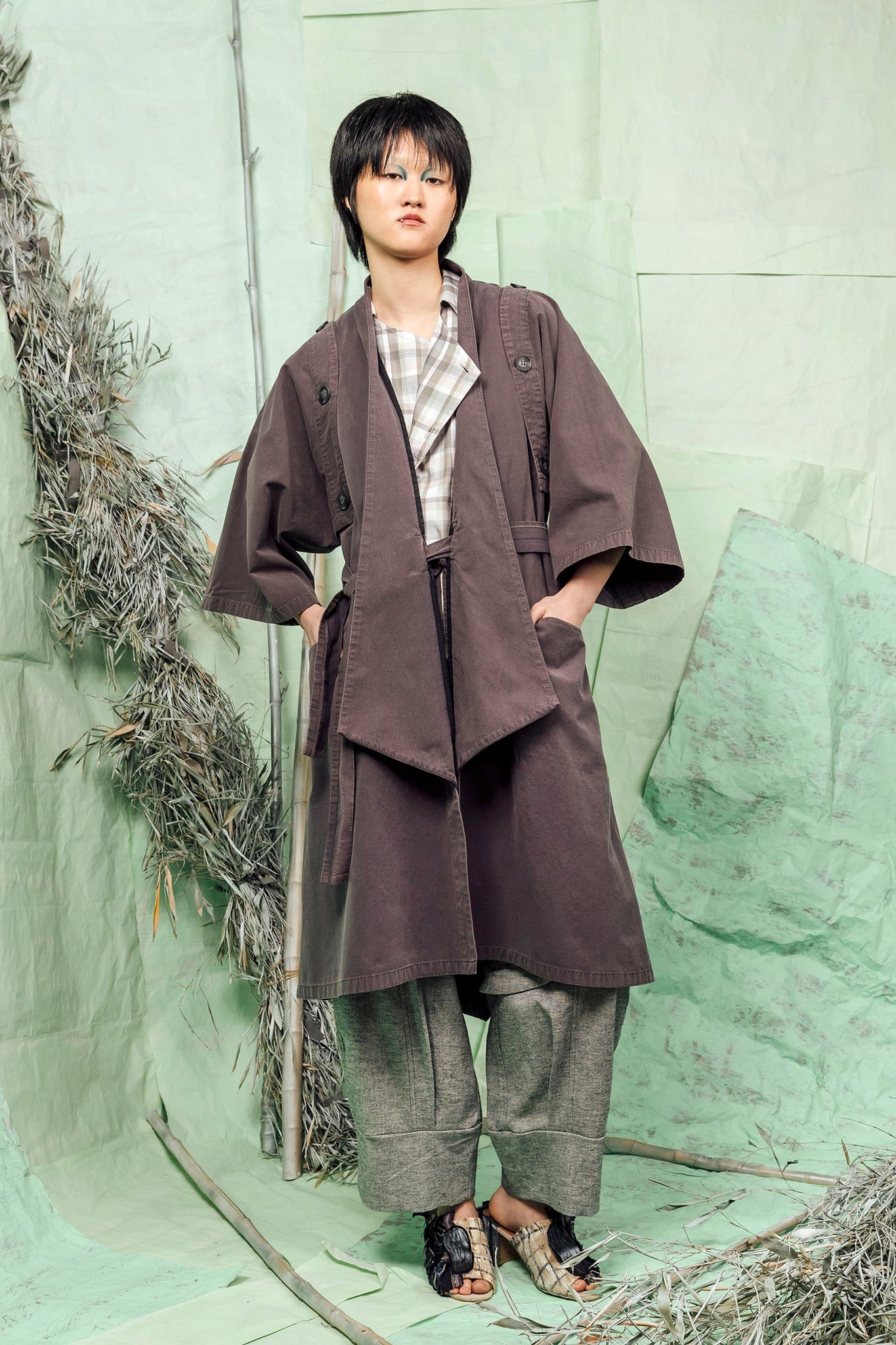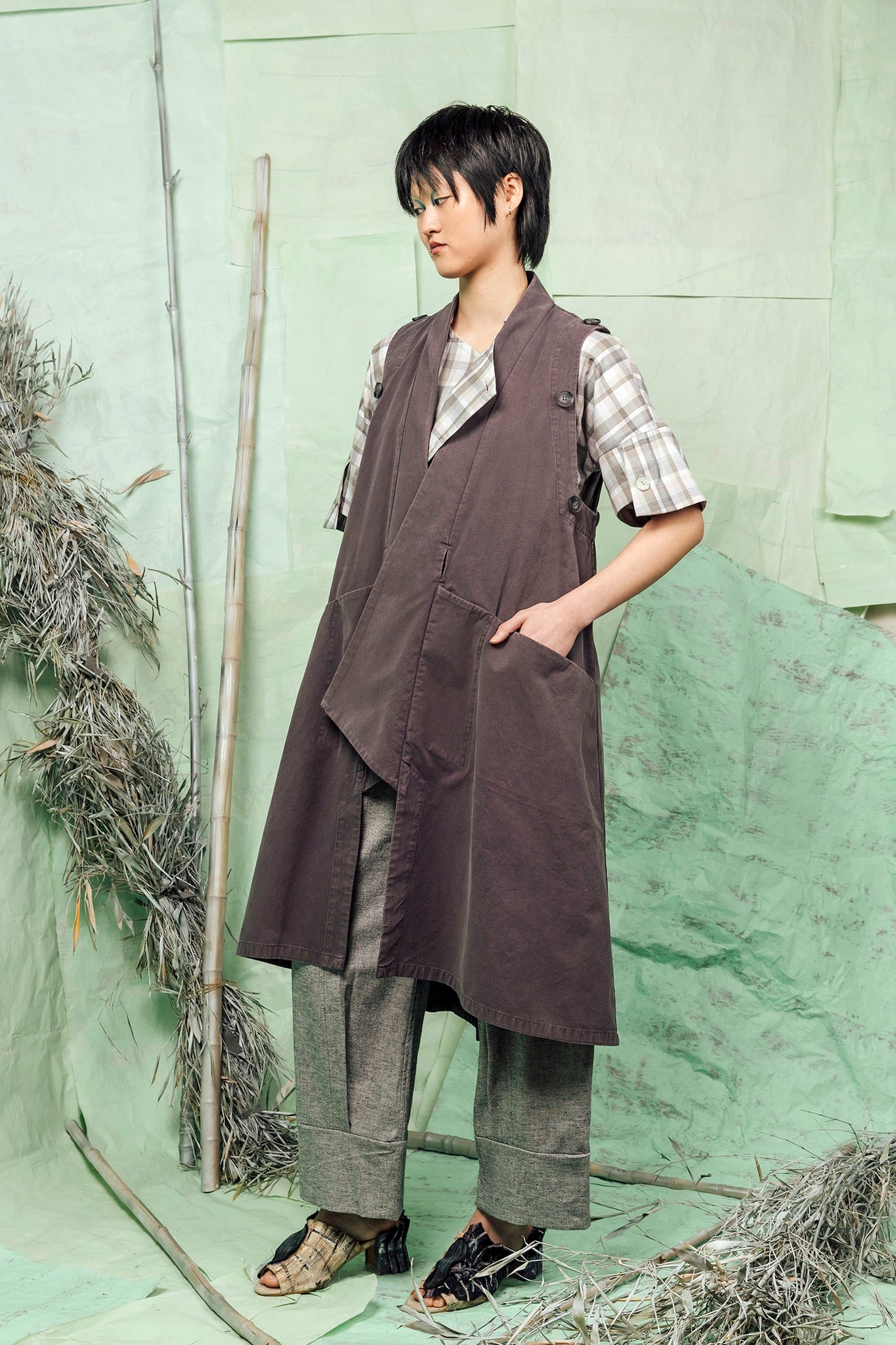 The AKIYA Jacket is an incredibly versatile and innovative addition to your JUDE wardrobe. It converts effortlessly from a trans-seasonal trench style jacket to a long duster vest with button off kimono sleeves, making it uniquely multi-functional.
