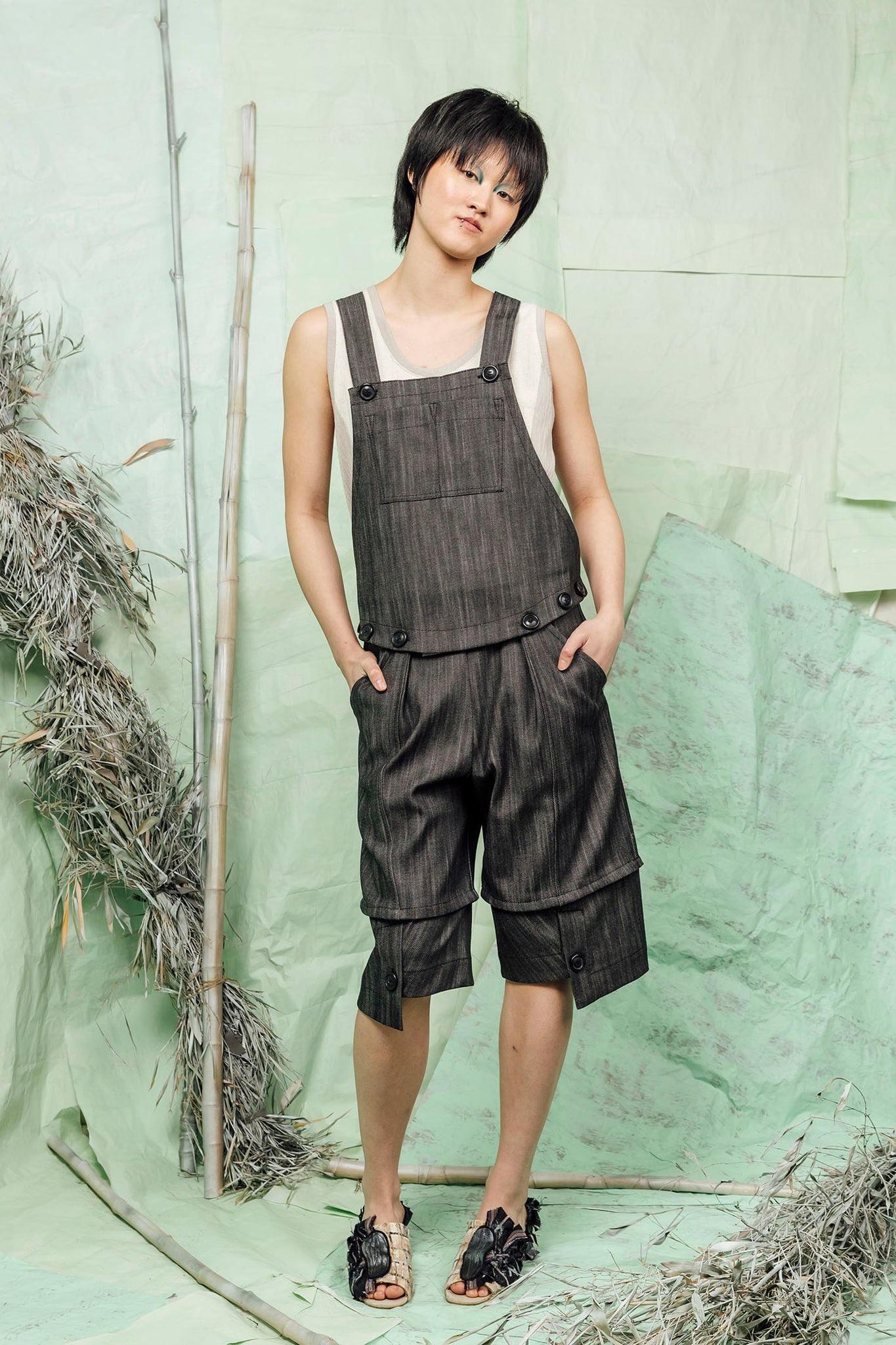Our latest unisex innovation, the TOMIS Set is our modern interpretation of the classic overalls. Mixing multi-functional tailoring with a button off waist feature, the TOMIS Top can be worn together with the TOMIS Shorts, or as separates.